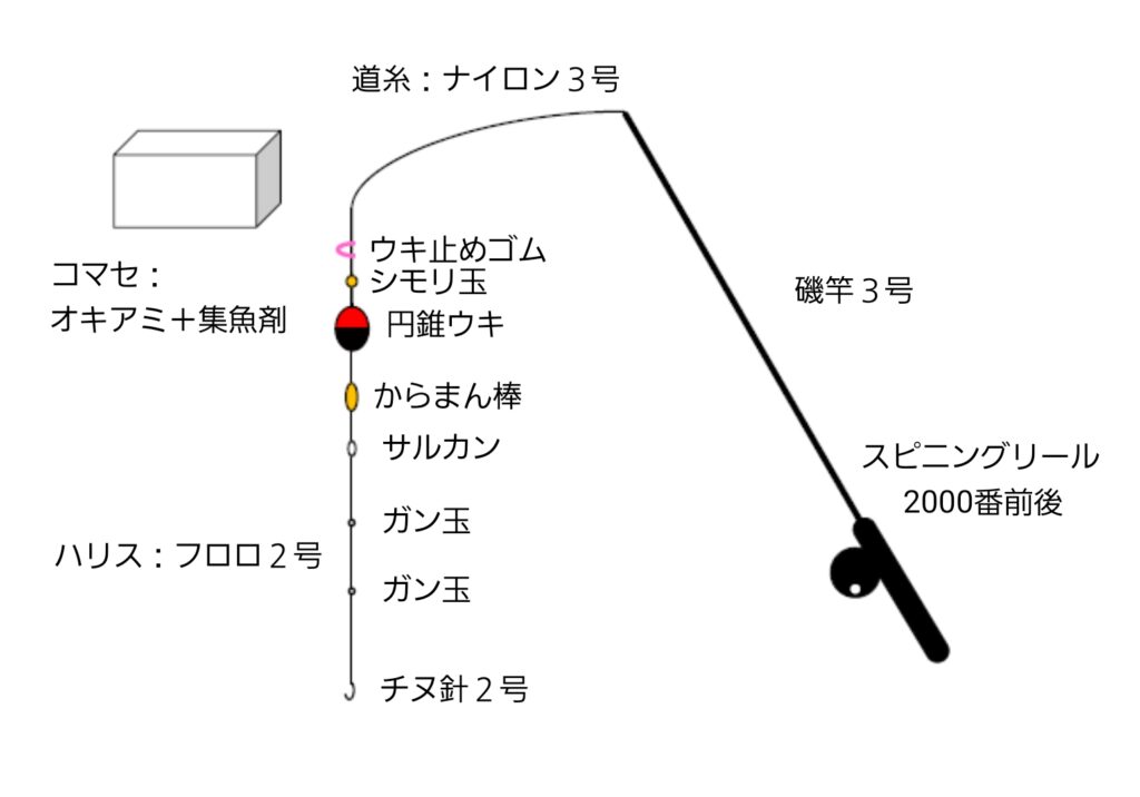 様々な釣り方がありますが、私がクロダイを釣ったときは定番のウキフカセ釣りでした。