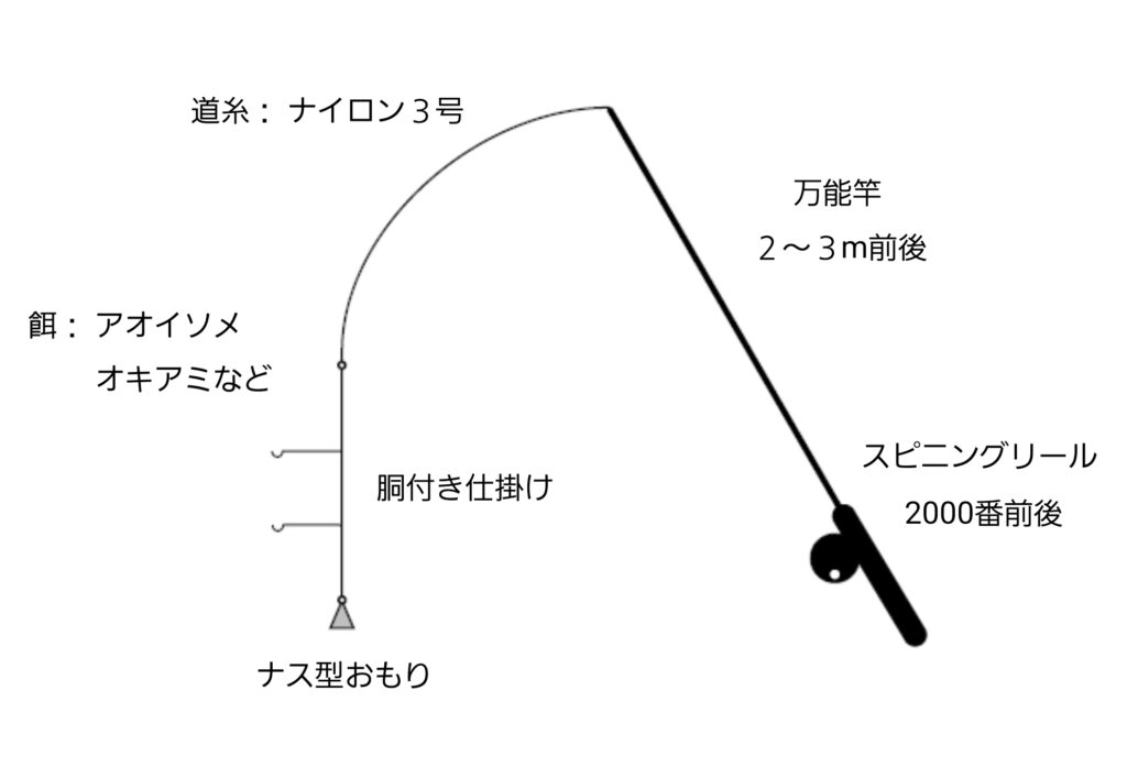堤防の壁際に居ることが多いので、胴付き仕掛けを足元に落としてみましょう。