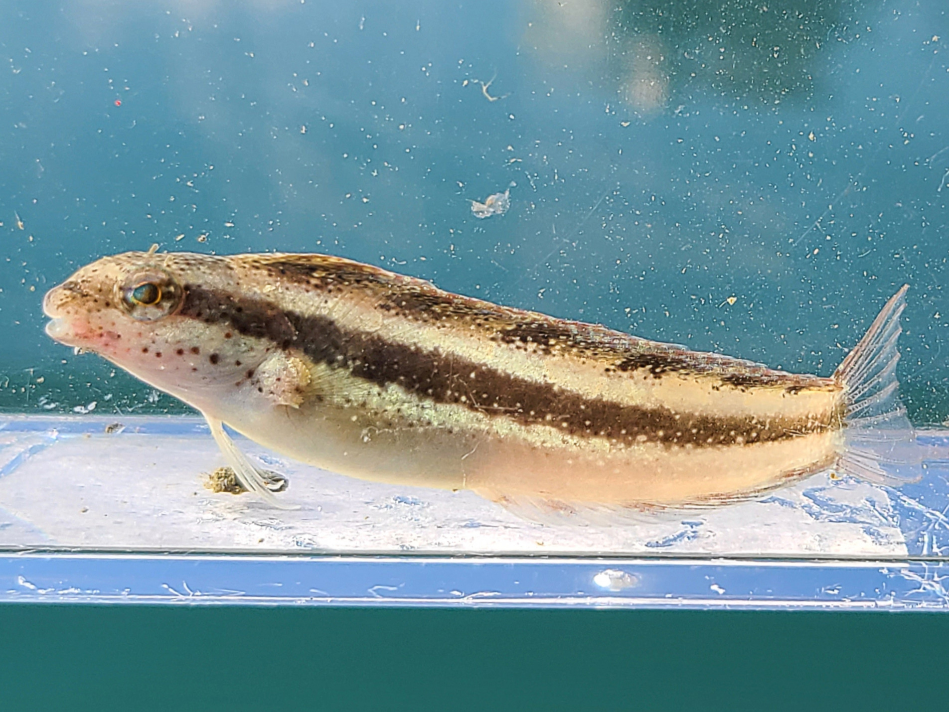 釣り上げたニジギンポの顔に寄ってみましたが、外からだと犬歯は確認できず。