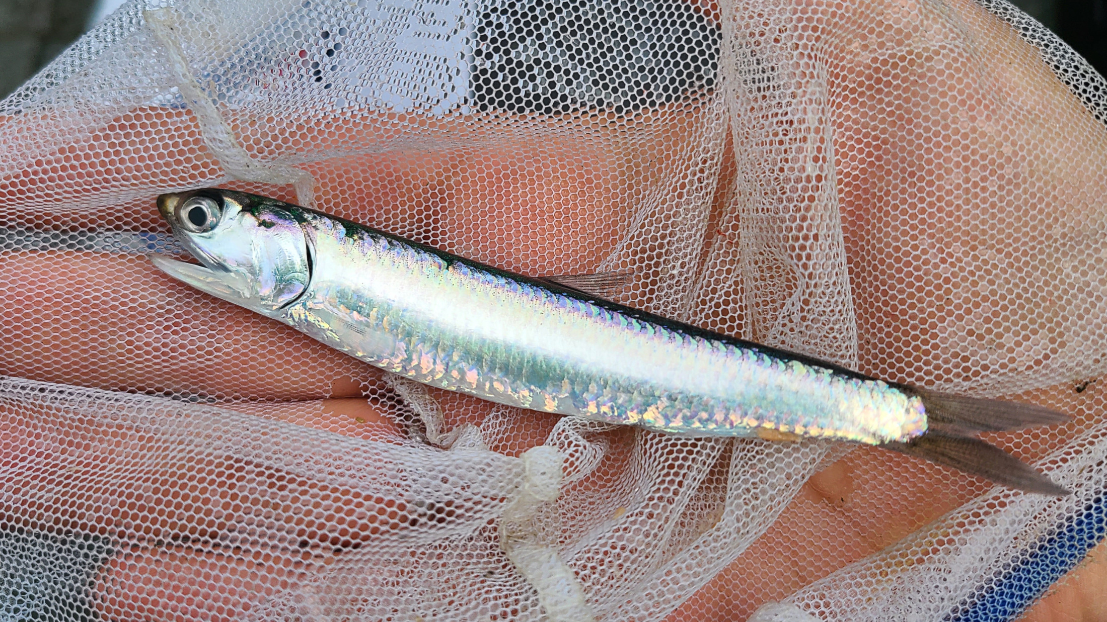 全身が薄くて剥がれやすい鱗で覆われており、釣り上げたイワシが暴れるだけで鱗がポロポロと落ちて散らばります。