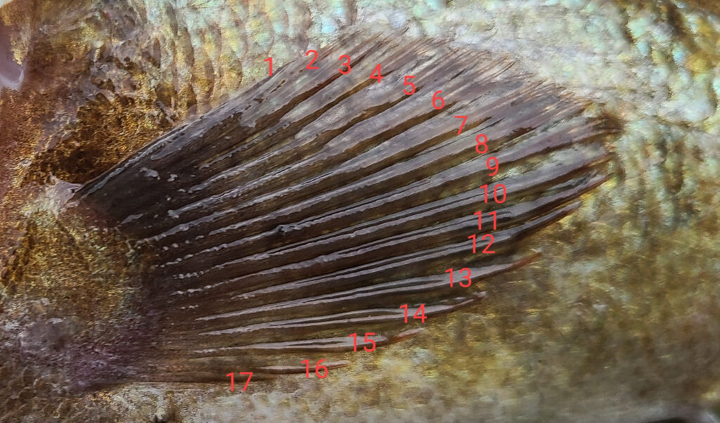 さらに胸ビレの軟条数も三種を見分けるポイント。