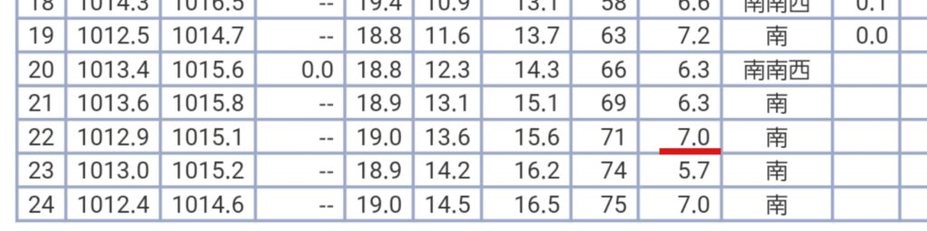 気象庁のサイトで確認すると、和歌山市は風速7m/秒。