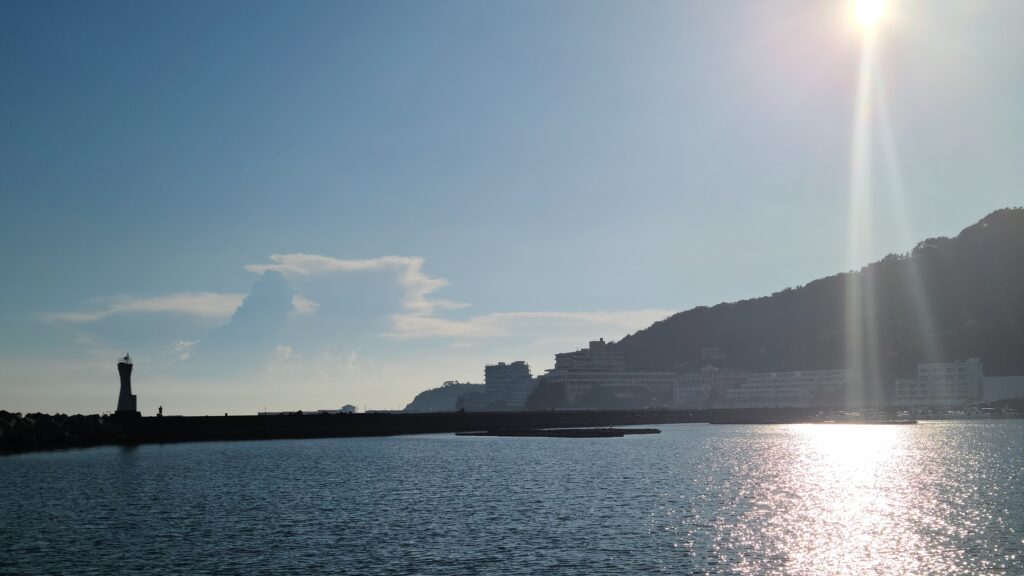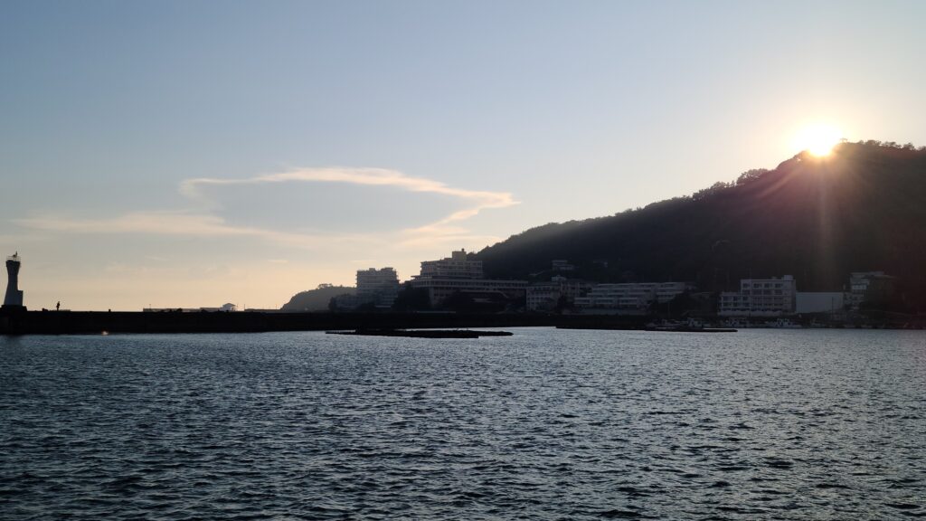 昼間は熱中症の危険があるので、夕方になってから近くの漁港にやってきました。