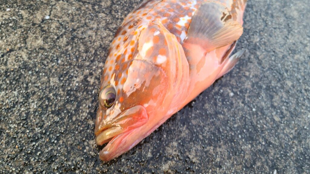 初めは大きなカサゴかと思いましたが、この模様はどうやらアコウ(キジハタ)ですね。