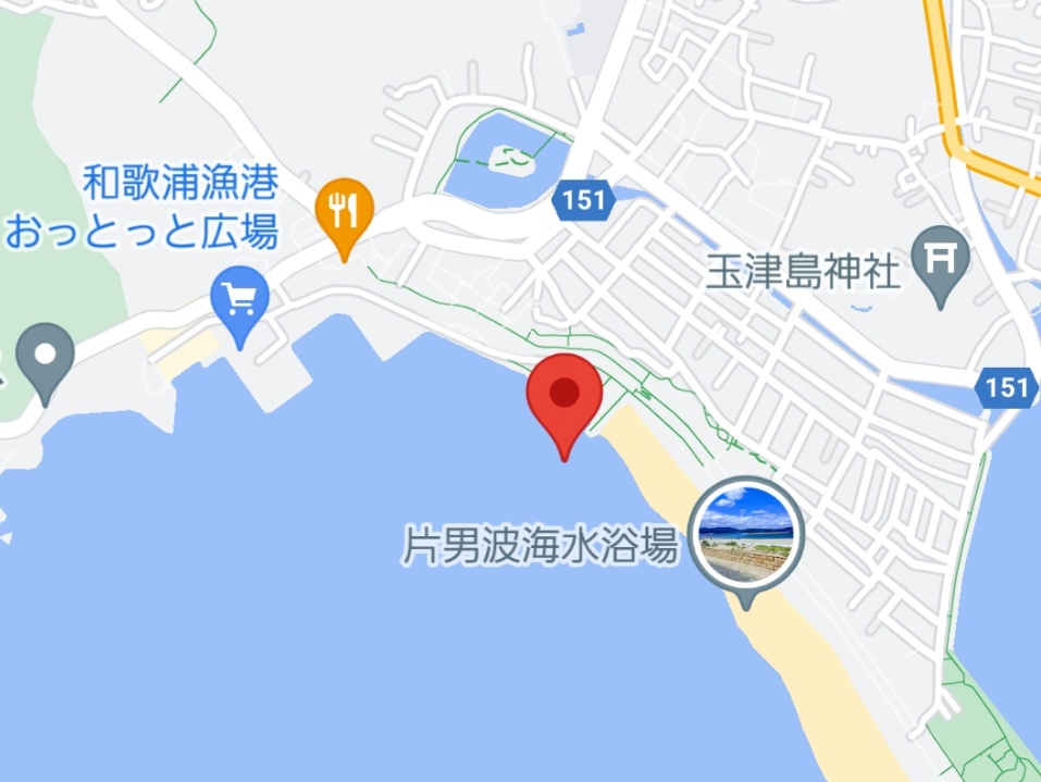片男波の砂浜と隣接しており、海底は砂地になっています。