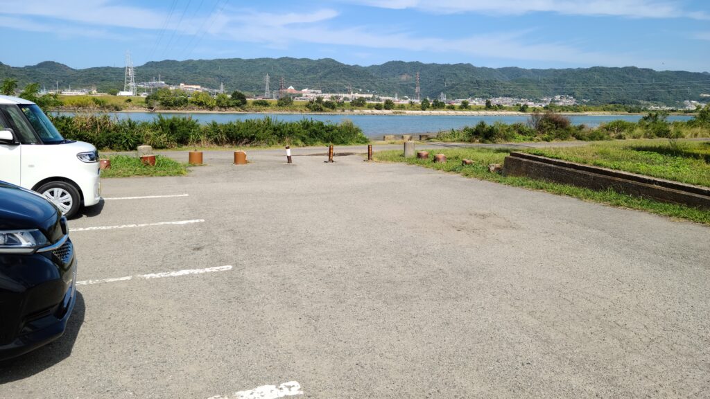 最奥の川寄りに車を停めれば、ほんの数歩で釣り場につくのでアクセス性は抜群です。