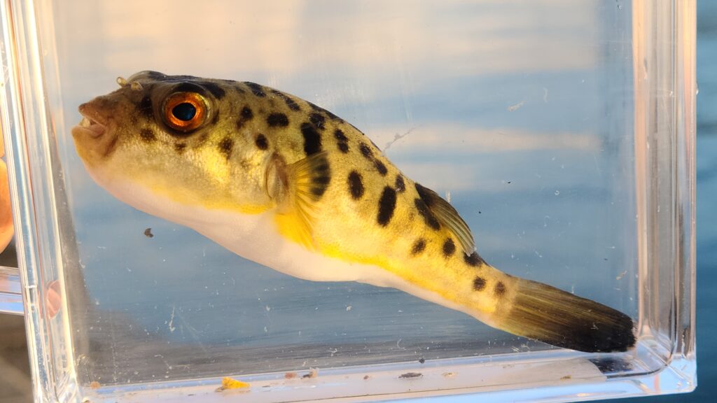 和歌山市内の堤防では、クサフグとコモンフグに次いで3番手によく見かけるフグです。(個人感)