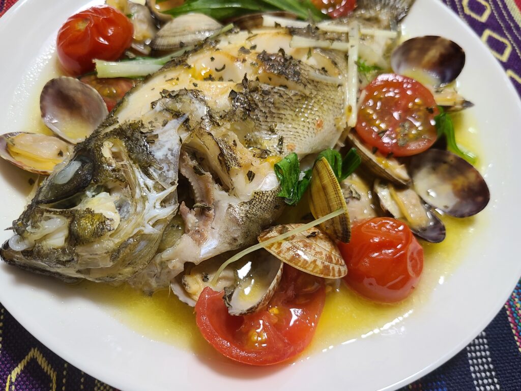 この日の夕飯はメバルのアクアパッツァ!