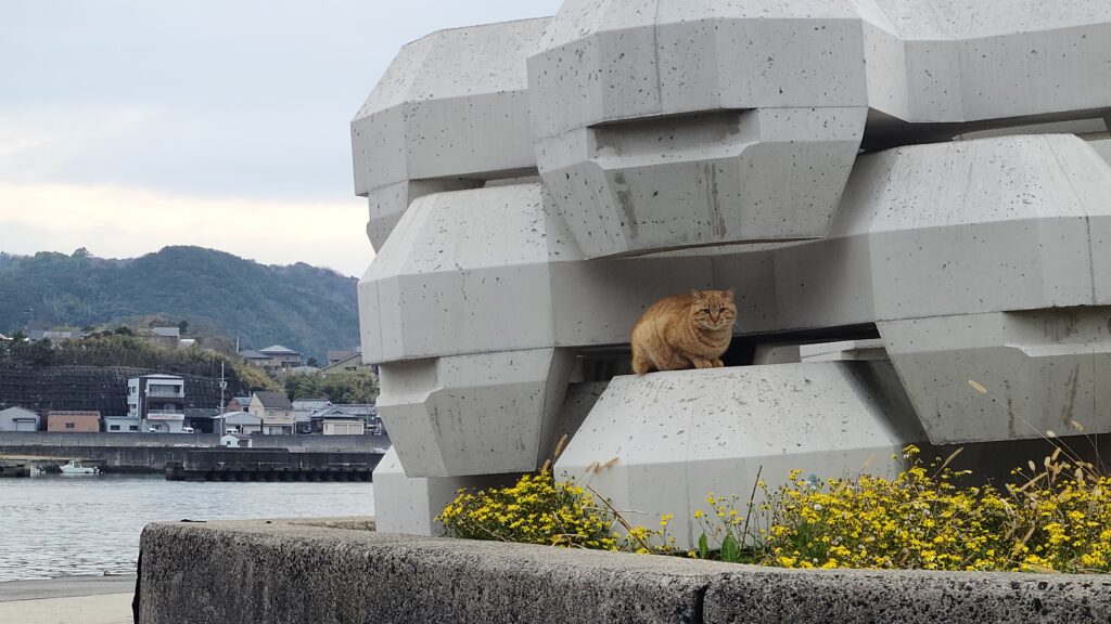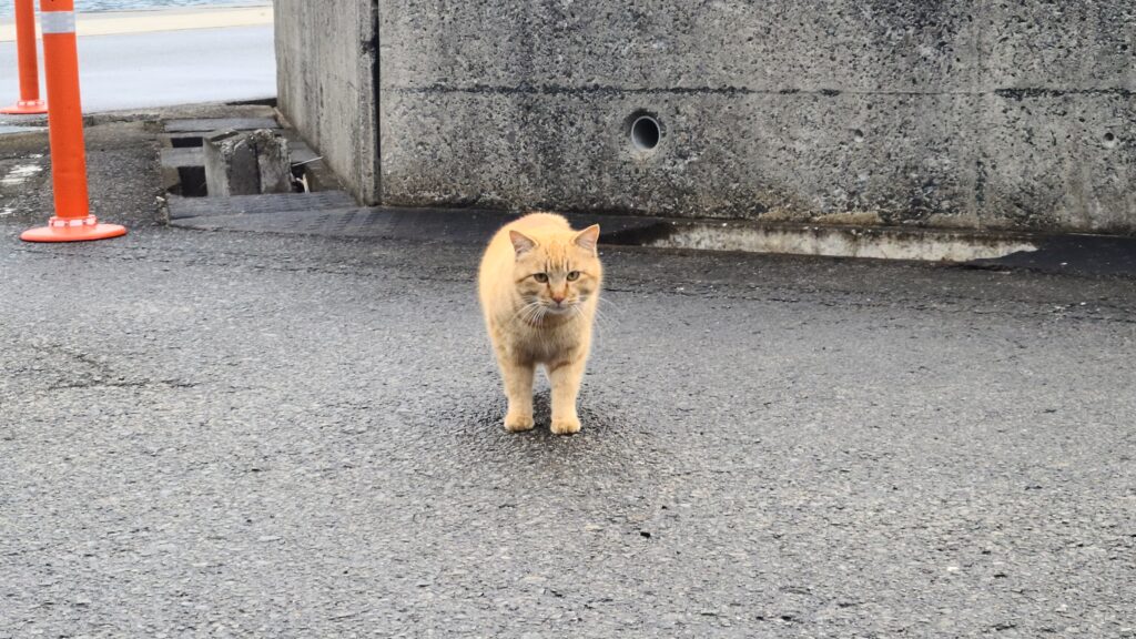 帰り際、漁港猫が見送りに来てくれました。