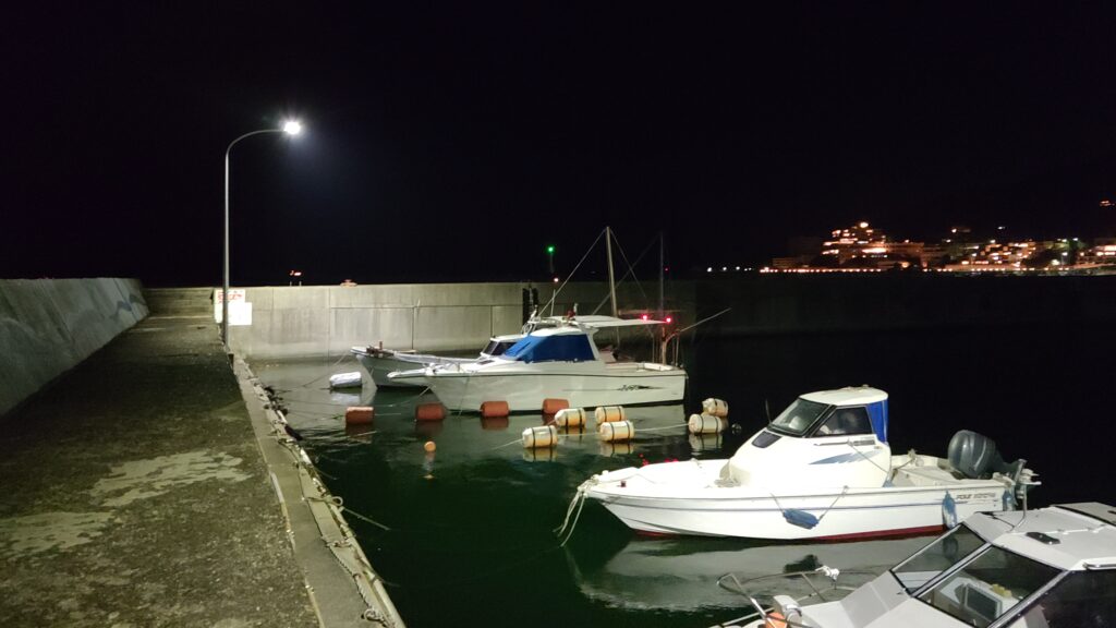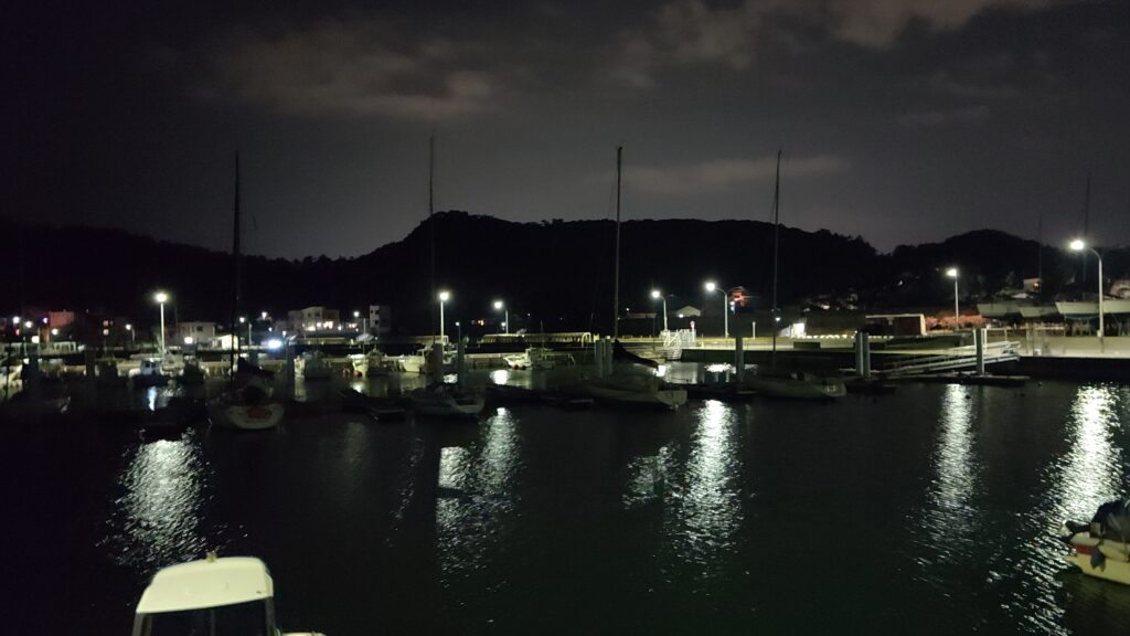 船着き場がある内湾は、夜でもヘッドライトが要らないほどの明るさです。