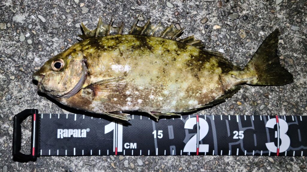 結局アジは居ませんでしたが、アイゴを釣って満足したので今夜はこれで撤収します。