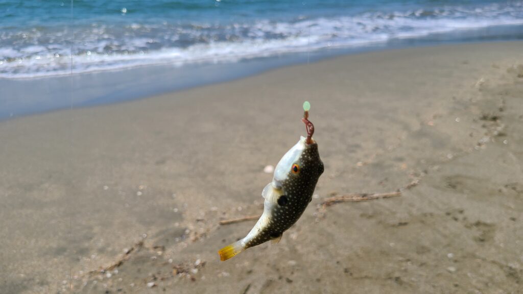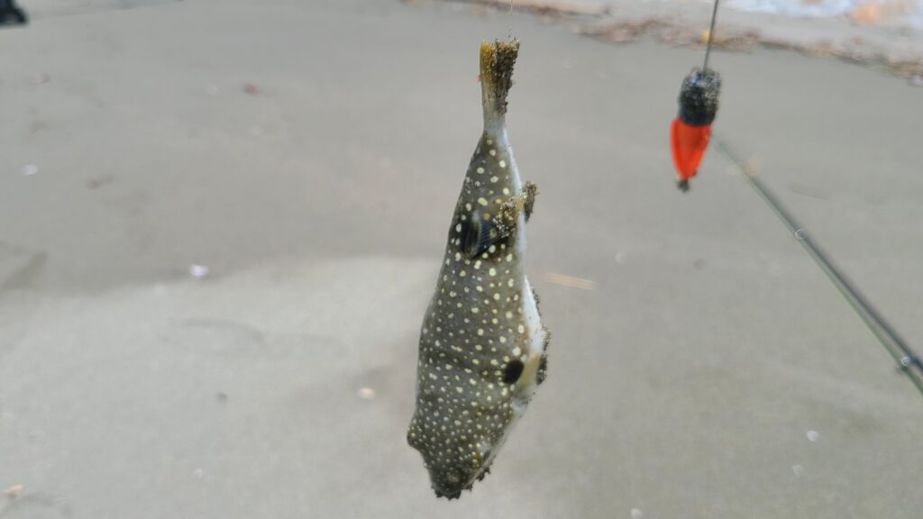 クサフグとガッチョは、キスの引き釣りではお馴染みの下道です。