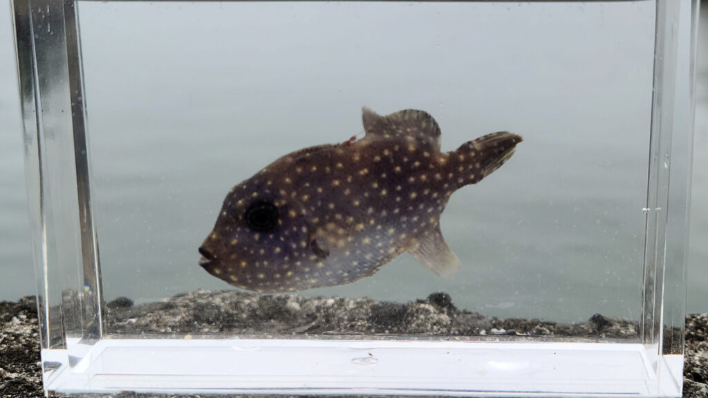 イシダイの近縁種、イシガキダイの稚魚も採れました。