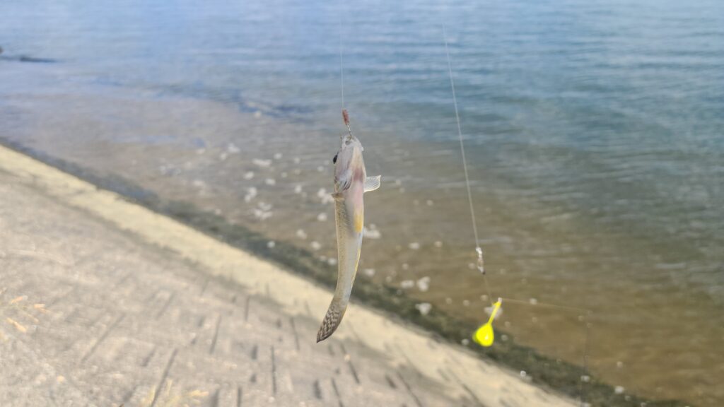 足元の浅瀬に仕掛けを投げて引きずってやると、エサに飛び付いてくるハゼの姿を観察することもできます。