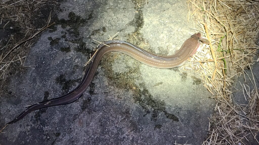 そろそろ何か掛かったかなと、仕掛けを回収してみます。