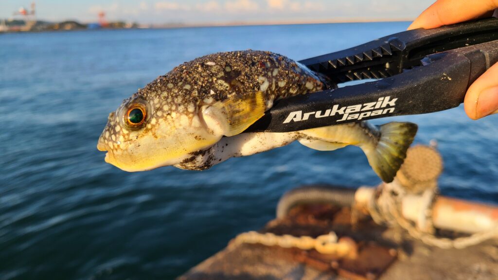 たまに堤防にフグが打ち捨てられているのを目にしますが、散歩中の犬や野良猫が誤って口にすると大変なことになるので絶対に止めましょう。