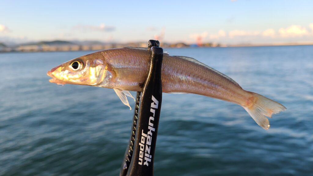 朝マズメの2番手に釣れたのは、お目当てのシロギス。